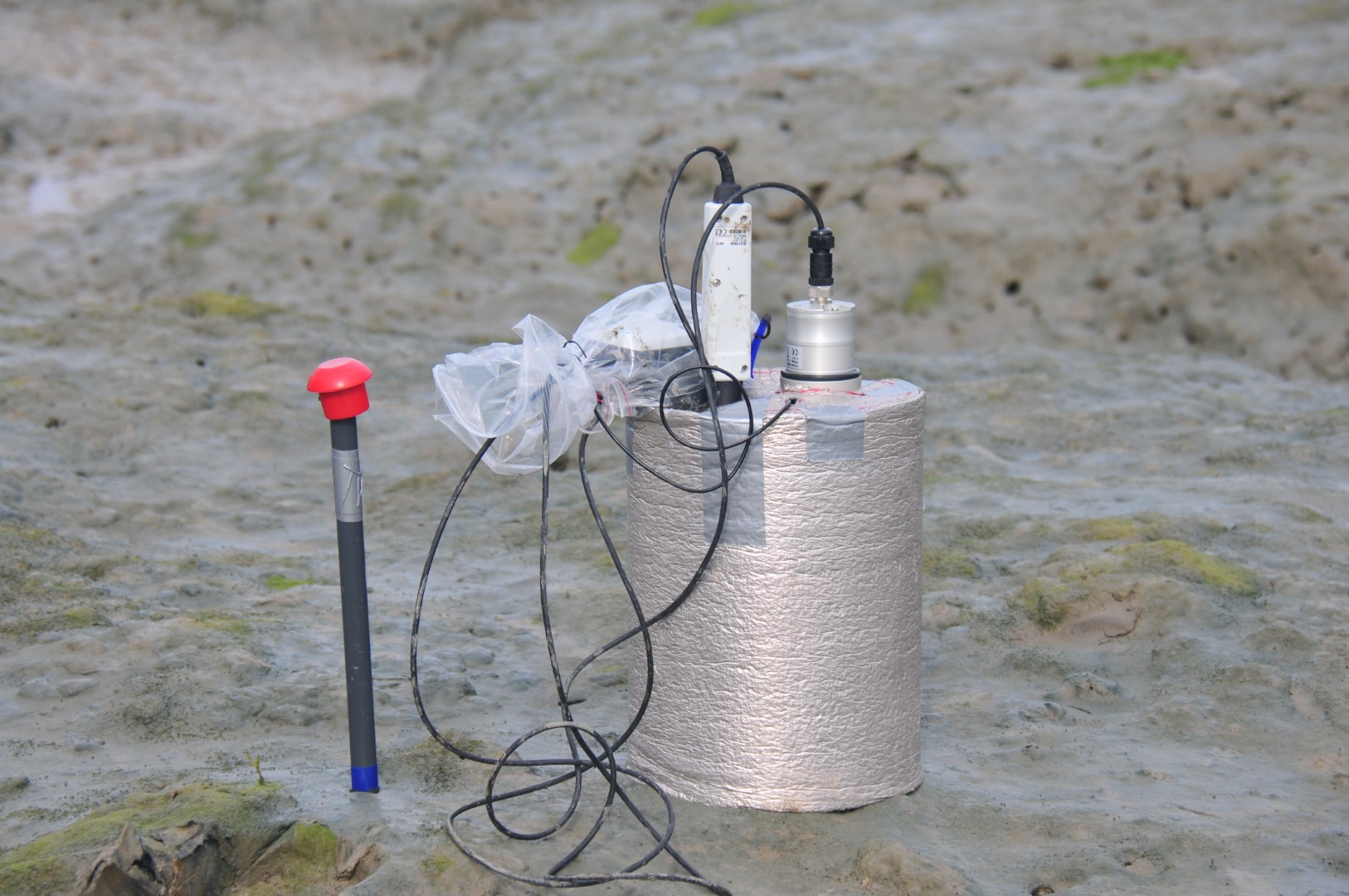 At the core of RICAS is the use of the Atmospheric Eddy Covariance (ECV) technique — a highly advanced and rarely applied method in marine environments — to measure CO₂ fluxes and determine primary production and respiration in three key intertidal communities: saltmarsh plants (SHP), microphytobenthos (MPB), and seagrass beds (ZB). Three ECV towers deployed along the intertidal gradient form a unique mesoscale “ECV mesonet”, providing near-continuous CO₂ flux data throughout seasonal cycles.